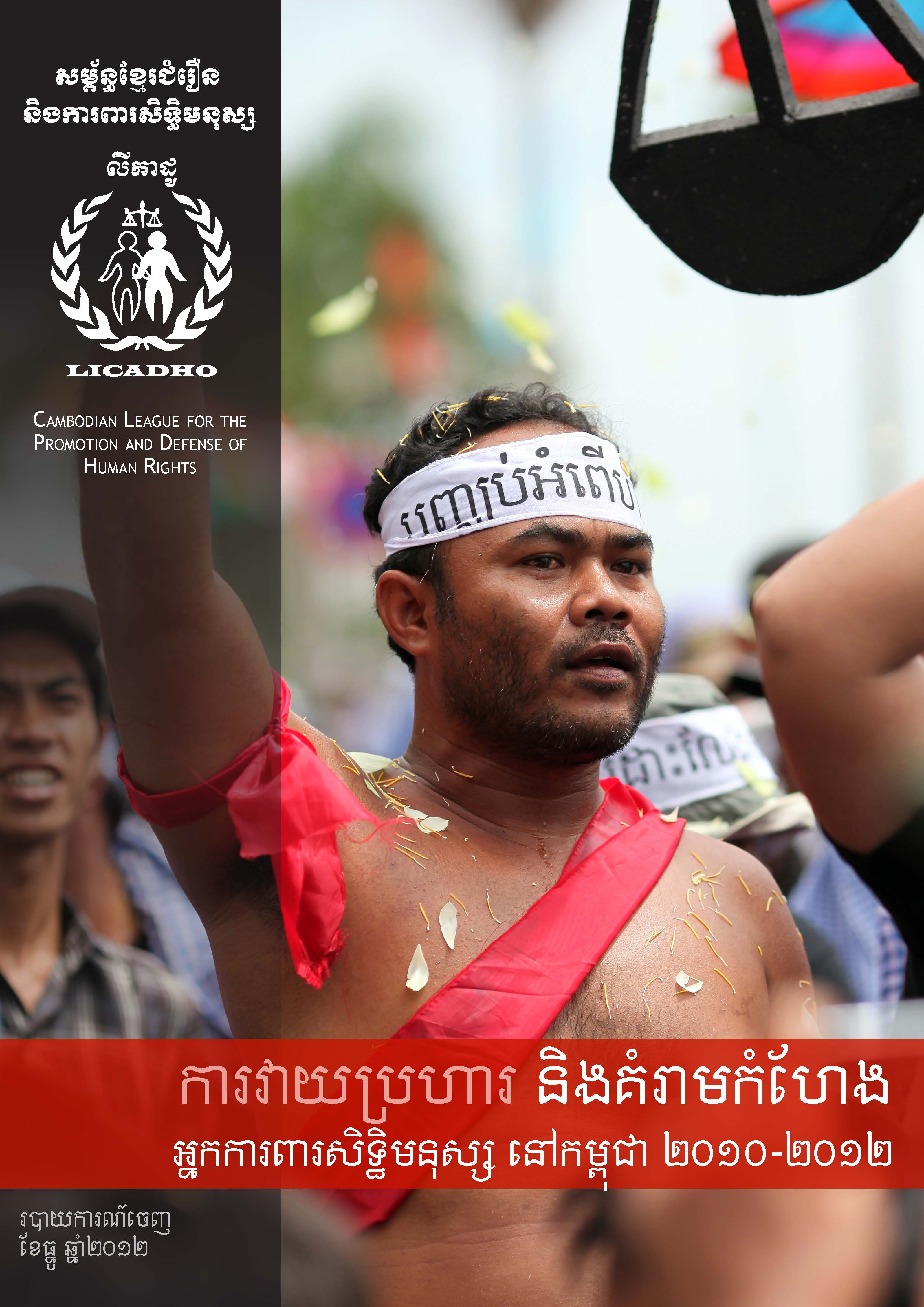 ឆ្នាំបោះពុម្ភផ្សាយ៖ ២០១២ / ប្រភពៈ សម្ព័ន្ធខ្មែរជំរឿននិងការពារសិទ្ទិមនុស្ស លីកាដូ (LICADHO)ចាប់តាំងពីអង្គការ លីកាដូ បានចេញរបាយការណ៍ចុងក្រោយនៅឆ្នាំ២០០៩ ស្តីពីអ្នកការពារសិទ្ធិមនុស្ស បង្ហាញអោយយើងឃើញថា បរិយាកាសសំរាប់អ្នកការពារសិទ្ធិមនុស្សនៅក្នុងប្រទេសកម្ពុជា មានភាពអាប់អួរយ៉ាងខ្លាំង ការបង្កើតឲ្យមានបរិយាកាសសិទ្ធមនុស្សនៅប្រទេសសកម្ពុជាកាន់តែធ្ងន់ធ្ងរបំផុតក្នុងរយះពេលជាង ១ ទសវត្សរ៍មកនេះ។ អំពើហិង្សាទៅលើសកម្មជនសិទ្ធមនុស្ស កាន់តែមានចំនួនកើនឡើងដែលអ្នកការពារសិទ្ធមនុស្សសំខាន់ៗត្រូវបានគេសម្លាប់ចោលដោយគ្មានទោស (និទណ្ឌភាព) ហើយសូម្បីតែតុលាការបានបាត់បង់នូវភាពមិនលំអៀងរបស់ស្ថាប័ននេះដែរ។