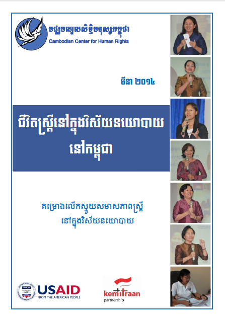 របាយការណ៍េនះ បង្ហាញការវាយតម្លៃលើការផ្តល់អំណាចឱ្យស្ត្រី ក្រុមប្រឹក្សាឃុំ សង្កាត់ សភា និងតំណាងរាស្រ្តស្ត្រីក្នុងអំឡុងពេល បំពេញការងារទាក់ទងនឹងការបញ្ចេញមតិេយាបល់ជាបរិមាណ និងគុណភាពរបស់សមាជិកសភាជាស្ត្រីក្នុងពេលប្រជុំពេញអង្គ រដ្ឋសភា សកម្មភាព និងគោលបំណងរបស់អ្នកតំណាងរាស្រ្តស្រ្តីចុះមូលដ្ឋានតាមមណ្ឌលខេត្ត ក្រុងនានា ចំនួនតំណាងរាស្រ្តស្រ្តីធៀបនឹងចំនួនតំណាងរាស្រ្តបុរសដែលចុះបេសកកម្ម ភាគរយអ្នកតំណាងស្ត្រីដែលបានចុះបេសកកម្មធៀបនឹងអ្នកតំណាងរាស្រ្តបុរសនៃគណបក្សនីមួយៗ សកម្មភាពរបស់អ្នកតំណាងរាស្រ្តស្រ្តីនៅថ្នាក់ជាតិ និងការចុះដោះស្រាយបន្ទាន់នៅតាមមណ្ឌល ។