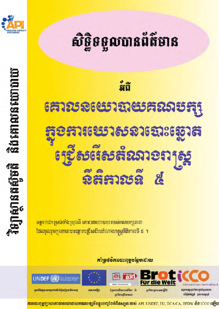 សៀវភៅនេះបោះពុម្ពដើម្បីបង្កើនការផ្សព្វផ្សាយដល់ប្រជាពលរដ្ឋកម្ពុជា ជាពិសេសប្រជាជនក្នុងតំបន់គោលដៅរបស់វិទ្យាស្ថាន API និងអង្គការដៃគូទាំងអស់ បានទទួលព័ត៌មានគ្រប់គ្រាន់ពីគោលនយោបាយរបស់គ្រប់គណបក្សក្នុងការឃោសនាបោះឆ្នោតជ្រើសរើសតំណាងរាស្រ្តនីតិកាលទី ៥ នេះ ដើម្បីរួមចំណែកឱ្យពួកគេធ្វើការសម្រេចចិត្តបានត្រឹមត្រូវ។