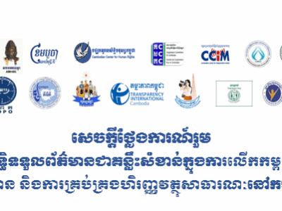 អង្គការតម្លាភាពកម្ពុជា និងអង្គការសង្គមស៊ីវិលសូមស្វាគមន៍ចំពោះកិច្ចព្រមព្រៀងបទឈប់បាញ់រវាងកម្ពុជានិងថៃនាពេលថ្មីៗនេះ ដើម្បីកាត់បន្ថយអរិភាពនៅតាមព្រំដែន។ ទោះជាយ៉ាងនេះក្តី យើងមានការព្រួយបារម្ភអំពីស្ថានភាពយោធិនខ្មែរចំនួន១៨នាក់ ដែលត្រូវបានចាប់ខ្លួនដោយយោធាថៃ បន្ទាប់ពីបទឈប់បាញ់ត្រូវបានប្រកាស។ យើងទាមទារឱ្យប្រទេសថៃ ដោះលែងយោធិនទាំងនេះជាបន្ទាន់ និងដោយគ្មានលក្ខខណ្ឌ ដោយសារមានព្រួយបារម្ភអំពីសុខុមាលភាពផ្លូវកាយ និងផ្លូវចិត្តរបស់ពួកគេដោយផ្អែកលើស្ថានភាពទាហានពីរនាក់ដែលត្រូវបានដោះលែងពីមុន។
