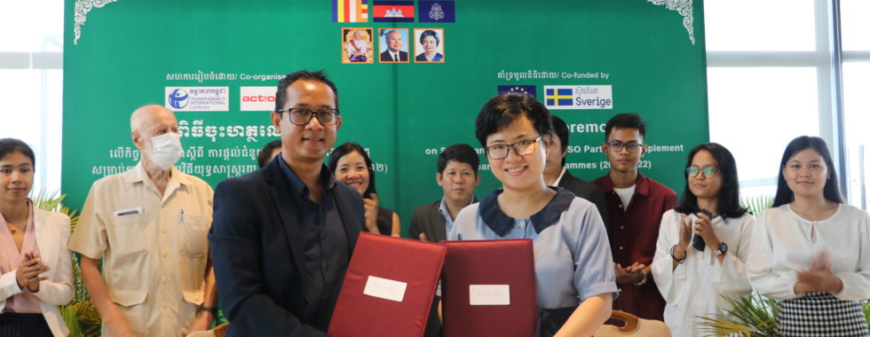 អង្គការតម្លាភាពកម្ពុជាបានទទួលមូលនិធិស្នូលពីទីភ្នាក់ងារសហប្រតិបត្តិការអភិវឌ្ឍអន្តរជាតិស៊ុយអែត (SIDA) ដើម្បីអនុវត្តកម្មវិធីយុទ្ធសាស្រ្តរយៈពេល៣ឆ្នាំនេះ ក្នុងការលើកកម្ពស់អភិបាលកិច្ចល្អ និងការប្រឆាំងអំពើពុករលួយ។ ជាការចូលរួមបន្ថែម អង្គការតម្លាភាពកម្ពុជា និងអង្គការអាក់សិនអេតកម្ពុជា ក៏ទទួលបានមូលនិធិពីសហភាពអឺរ៉ុប (EU) ដើម្បីអនុវត្តគម្រោងមួយដែលមានរយៈពេល ៣ឆ្នាំ “ពង្រឹងសិទ្ធិអំណាចរបស់ស្រ្តីវ័យក្មេង ក្នុងការធ្វើសេចក្តីសម្រេចចិត្ត និងជំរុញការផ្តល់សេវាសាធារណៈឱ្យកាន់តែមានគណនេយ្យភាព”។ គម្រោងនេះបាននិងកំពុងអនុវត្តនៅរាជធានីភ្នំពេញ និងនៅខេត្តគោលដៅចំនួន ៩ ដែលបានចាប់អនុវត្តកាលពីខែមករា ឆ្នាំ២០២០ និងត្រូវបញ្ចប់នៅខែធ្នូ ឆ្នាំ២០២២ ជាមួយកញ្ចប់ថវិកាសរុបចំនួនជាង ២ លានអឺរ៉ូ។ កម្មវត្ថុចម្បងនៃការអនុវត្តគម្រោងនេះ គឺដើម្បីបង្កើតបរិយាកាសអំណោយផល និងពង្រឹងសិទ្ធិអំណាចយុវជន ជាពិសេសស្រ្តីវ័យក្មេង ក្នុងការចូលរួមសកម្មភាពក្នុងដំណើររការសម្រេចចិត្ត ដើម្បីពង្រឹងការផ្តល់សេវាសាធារណៈជូនប្រជាពលរដ្ឋ ជាពិសេសយកចិត្តទុកដាក់លើតម្រូវការយេនឌ័រ និងតាមរយៈការប្រើប្រាស់ប្រព័ន្ធបច្ចេកវិទ្យាបែបច្នៃប្រឌិត និងផ្តល់ឱកាស ដើម្បីចូលរួមក្នុងកិច្ចពិភាក្សាជាមួយមន្ត្រីទទួលបន្ទុកក្នុងការសម្រេចចិត្ត និងមន្ត្រីផ្តល់សេវាសាធារណៈនានានៅថ្នាក់ជាតិ និងថ្នាក់ក្រោមជាតិ។ សកម្មភាពដ៏សំខាន់មួយនៅក្នុងគម្រោងនេះ គឺការផ្តល់ជំនួយហិរញ្ញវត្ថុដល់អង្គការមិនមែនរដ្ឋាភិបាលក្នុងស្រុក អង្គការសហគមន៍ ក្រុមយុវជន និងប្រព័ន្ធផ្សព្វផ្សាយ។ ស្ថាប័នទាំងនេះ គឺជាតួអង្គដ៏សំខាន់ដែលអាចផ្សព្វផ្សាយ និងធ្វើការជាមួយក្រុមគោលដៅបានទូលំទូលាយទៅតាមតំបន់ប្រតិបត្តិការសកម្មភាពរបស់ខ្លួន ជាពិសេសជាមួយប្រជាពលរដ្ឋ ដែលមិនសូវត្រូវបានយកចិត្តទុកដាក់។